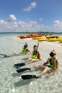 ![]() In the water. After instructions and equipment check the snorkel experience starts in the crystal clear water on the island's North's side and proceeds around the island. About 90 minutes in duration. |