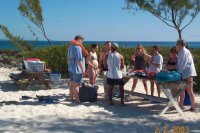 ![]() Petersen Cay picnic table. After snorkeling a do-it-yourself deli sandwiches light lunch and beverage is being served. |
